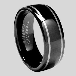 We have taken the classic black tungsten carbide wedding band and added some Tungsten Affinity flair to it. The satin black finish looks even more luxurious when accentuated by the two silver polished fine lines. The simple creativity with this black tungsten ring is sure to turn heads.Band comes in a 8MM wide comfort fit.If you are looking for a ring that is scratch resistant and forever keeps its shine, then our Tungsten Carbide rings are for you. Tungsten Carbide is ranked second hardest next to diamond on the Mohs scale, diamond being a 10 followed by Tungsten Carbide as 9. All of our Tungsten rings are Cobalt Free and hypoallergenic. Our rings will not cause skin irritations nor turn your fingers green. Due to the Hardness of Tungsten, these rings can be laser engraved, but not hand engraved. All rings come with a 100% Money Back Guarantee .Our tungsten carbide wedding rings are lifetime guarantee. (Please specify your ring size on the comment section upon ordering.) Read more...